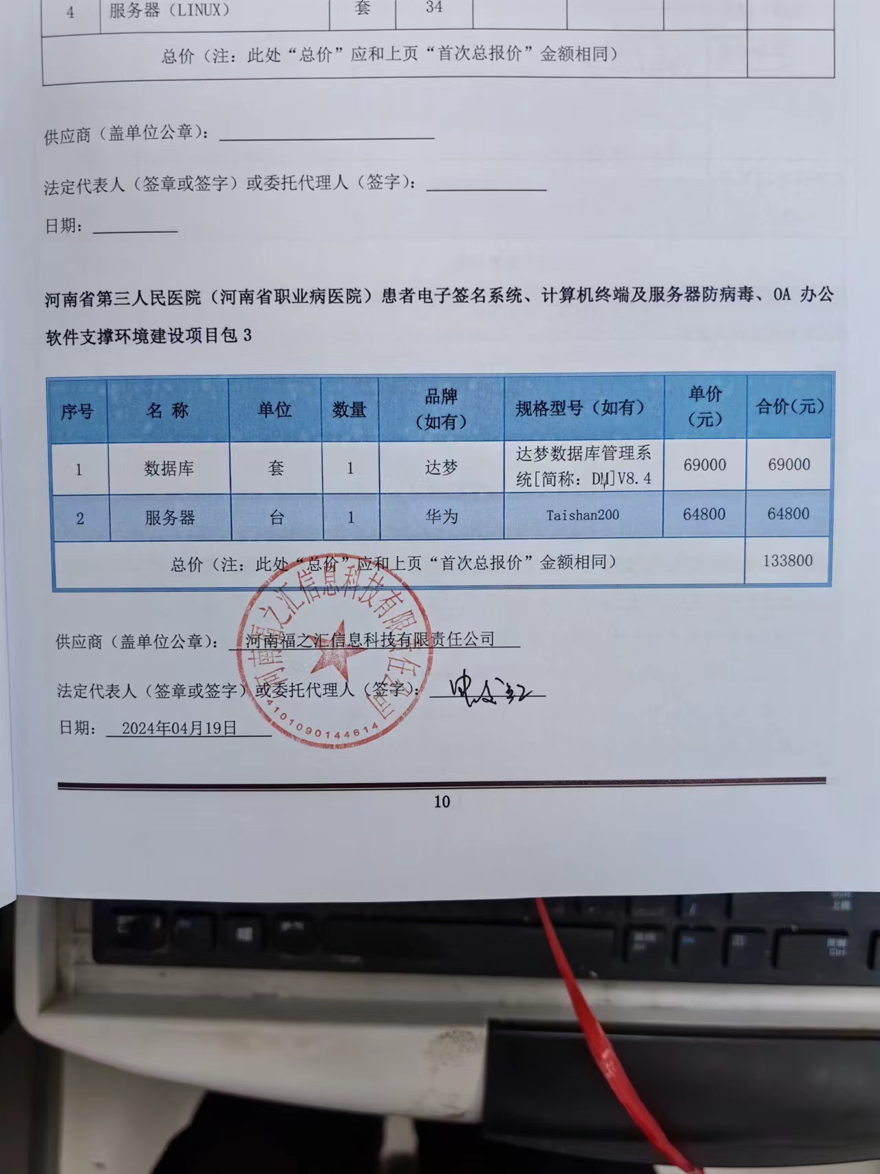 2、采購項目名稱:河南省第三人民醫(yī)院(河南省職業(yè)病醫(yī)院)患者電子簽名系統(tǒng)、計算機終端及服務器防病毒、OA辦公軟件支撐環(huán)境建設項目