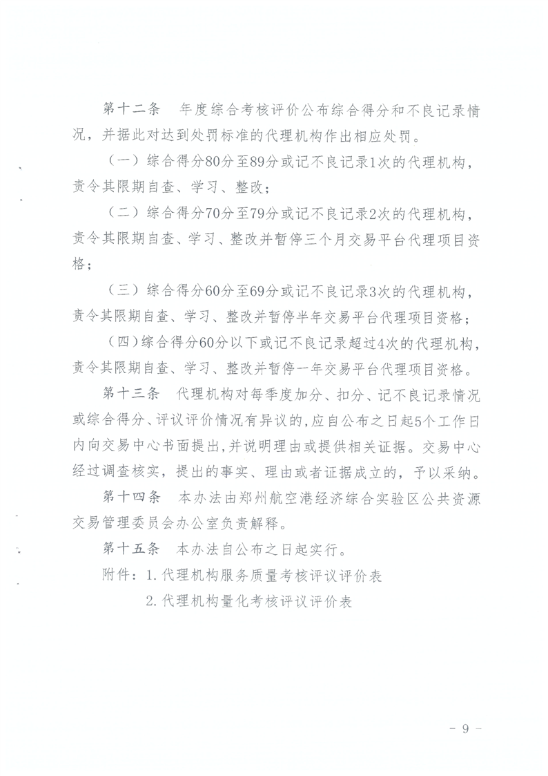 鄭州航空港經(jīng)濟(jì)綜合實驗區(qū)公共資源交易代理機(jī)構(gòu)動態(tài)考核評價暫行管理辦法