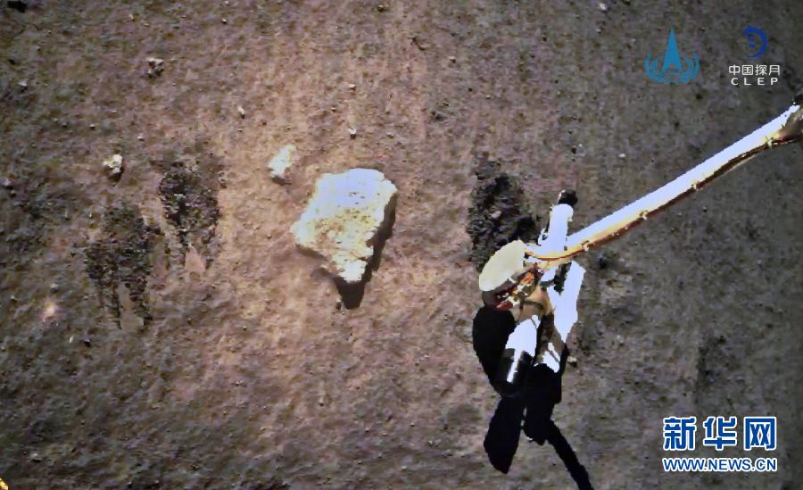 12月2日,嫦娥五號(hào)探測(cè)器在月球表面自動(dòng)采樣。新華社發(fā)(國(guó)家航天局供圖)