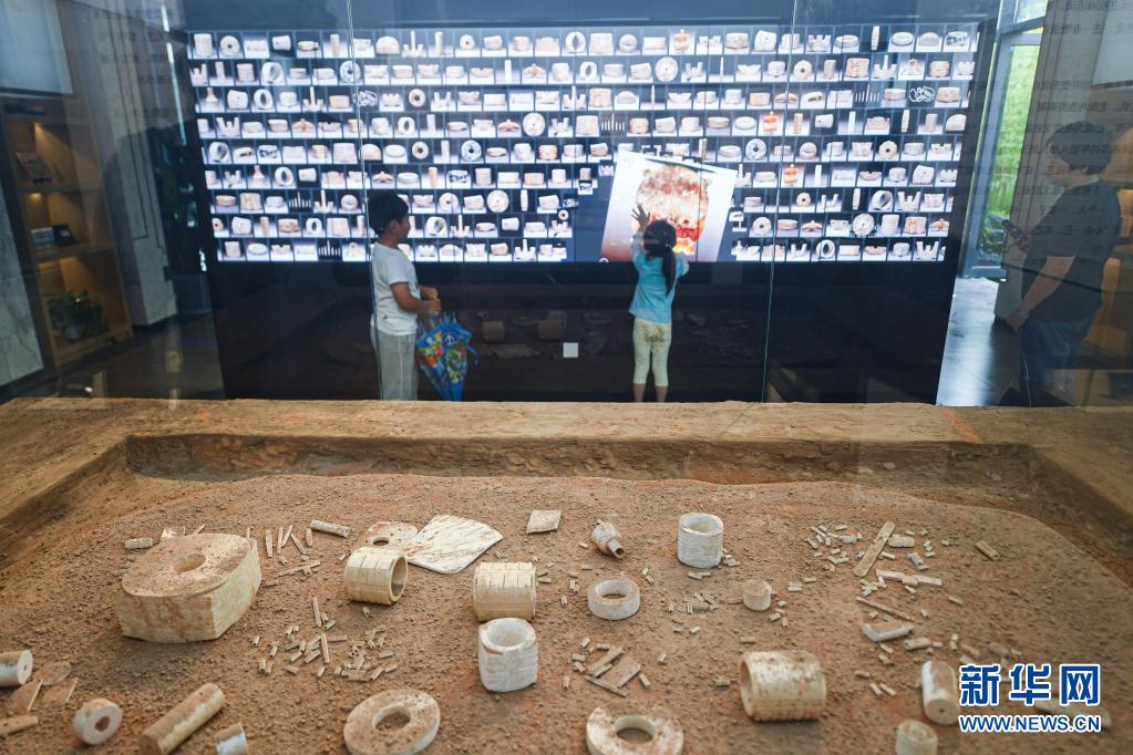 202066日,小游客在浙江省杭州市余杭區(qū)瓶窯老街的良渚玉雕館內(nèi)通過電子屏學(xué)習(xí)玉雕知識。新華社記者 徐昱 攝