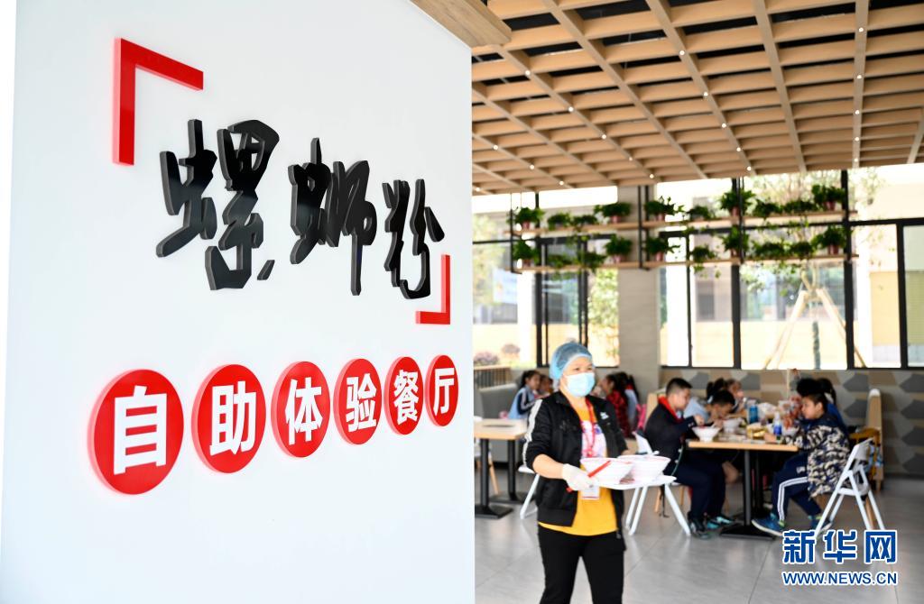 2021429日,在廣西柳州螺螄粉產(chǎn)業(yè)園,參加研學(xué)團的學(xué)生在一家螺螄粉企業(yè)里品嘗螺螄粉。新華社發(fā)(黎寒池 攝)