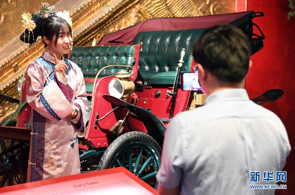 2020518日,在北京汽車博物館,曾紅娟(左)用講故事的方式通過網(wǎng)絡(luò)直播平臺為觀眾介紹藏品車。新華社記者 任超 攝