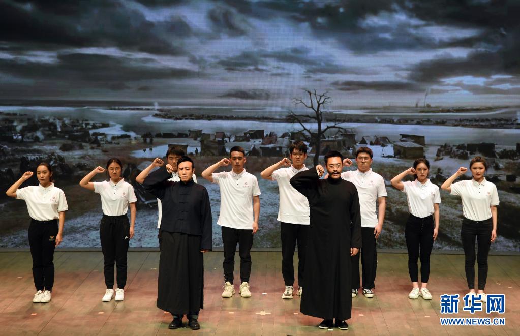 電視劇《覺(jué)醒年代》主創(chuàng)團(tuán)隊(duì)走進(jìn)北京大學(xué),劇中主要演員與北大學(xué)生同臺(tái)演出(420日攝)。新華社記者 任超 攝