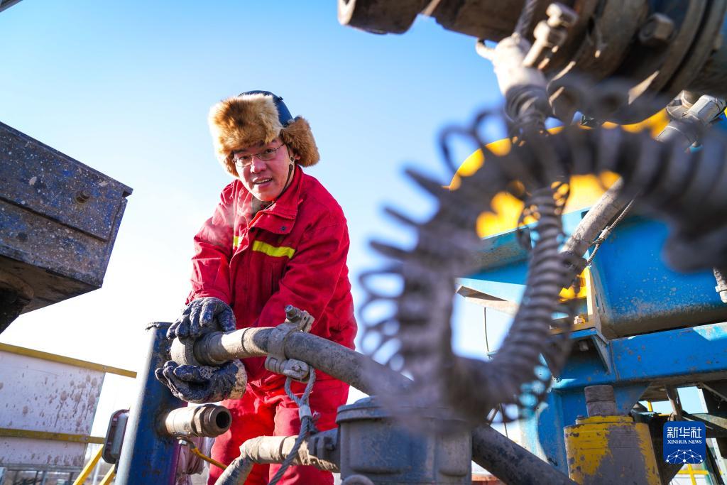 大慶油田1205鉆井隊(duì)鉆井工人在野外鉆井平臺作業(yè)(2021年1月7日攝)。新華社記者 王松 攝