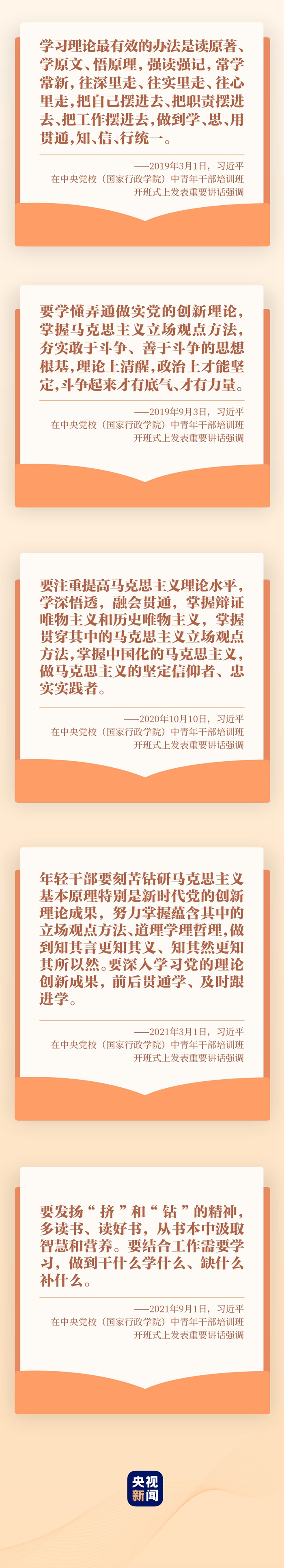 這是2019年以來(lái),習(xí)近平總書記第五次為中青年干部培訓(xùn)班開(kāi)班授課。三年五次開(kāi)講,習(xí)近平總書記站在黨和國(guó)家事業(yè)發(fā)展的高度,對(duì)年輕干部發(fā)出號(hào)召、提出要求、作出動(dòng)員。