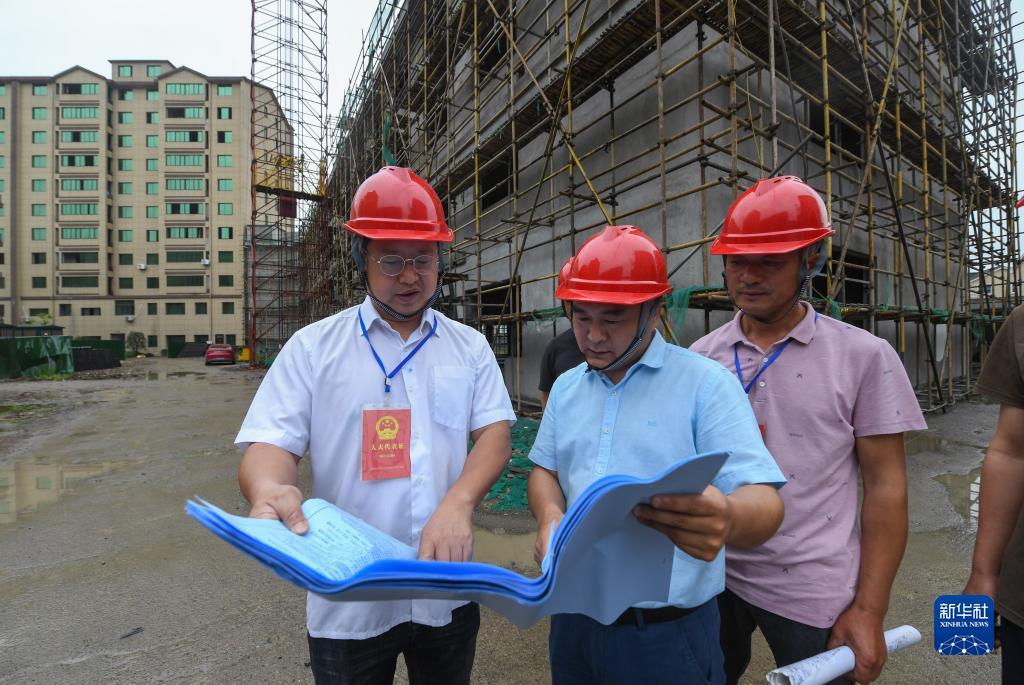 2021年6月2日,在浙江省湖州市吳興區(qū)東林鎮(zhèn)星火村,當(dāng)?shù)厝舜蟠淼揉l(xiāng)村議事會成員對星火村農(nóng)民新村建設(shè)項(xiàng)目的施工進(jìn)展情況進(jìn)行監(jiān)督檢查。新華社記者 徐昱 攝
