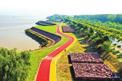 深秋時(shí)節(jié),航拍的開(kāi)封黃河生態(tài)廊道一景。牛書培 攝
