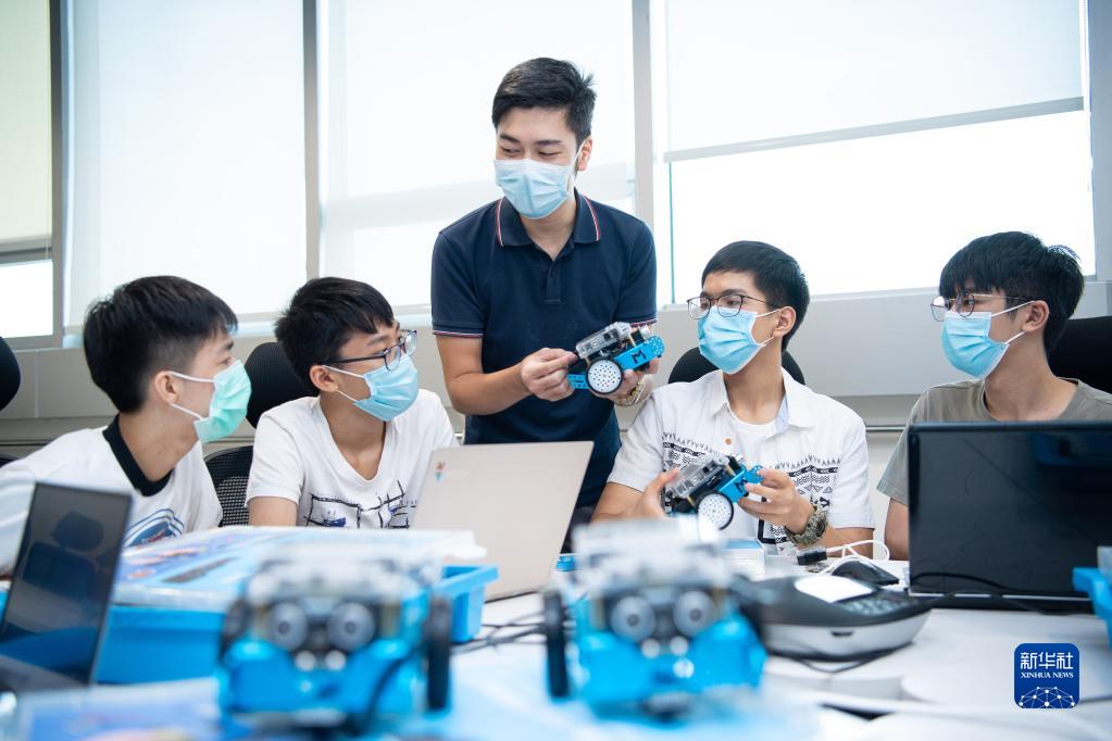 2020年7月14日,創(chuàng)業(yè)者吳以航在澳門青年創(chuàng)業(yè)孵化中心為學(xué)生上培訓(xùn)課。“80后”吳以航是澳門青年創(chuàng)業(yè)孵化中心會員,2019年,他進(jìn)駐廣州市天河區(qū)港澳青年之家,成立藍(lán)點(diǎn)教育技術(shù)(廣州)有限公司。新華社記者 張金加 攝