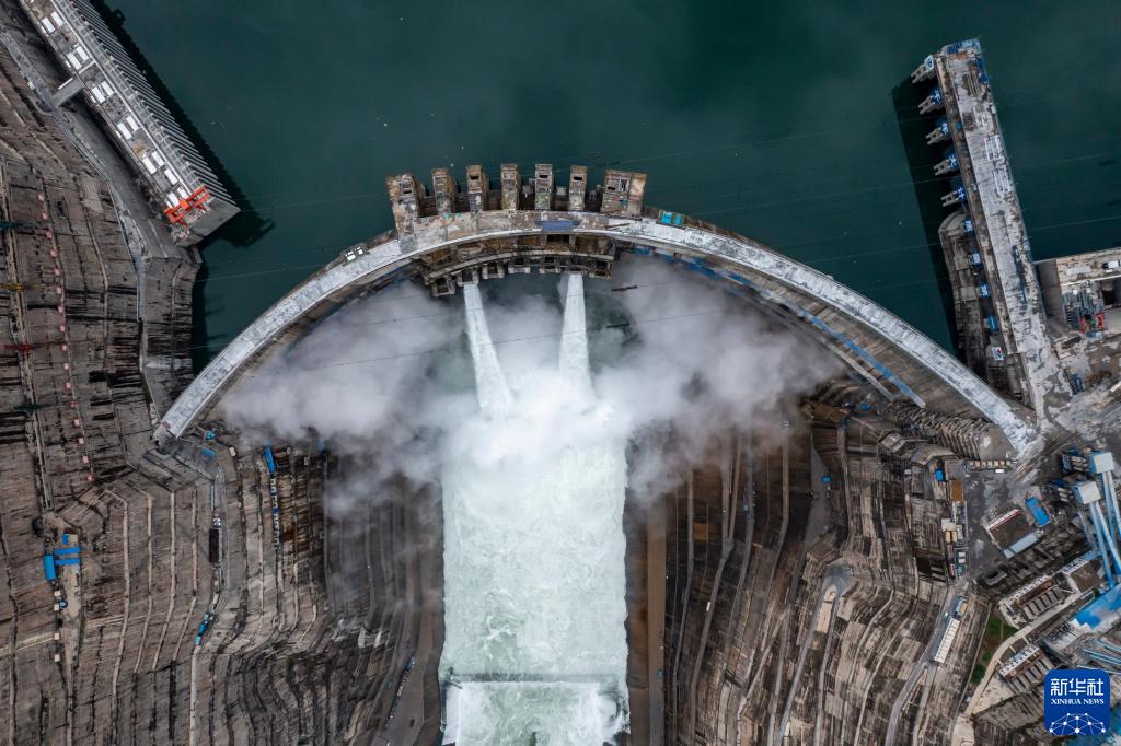 俯瞰白鶴灘水電站(無人機照片,6月28日攝)。金沙江白鶴灘水電站首批機組于6月28日安全準(zhǔn)點投產(chǎn)發(fā)電。新華社記者 江文耀 攝