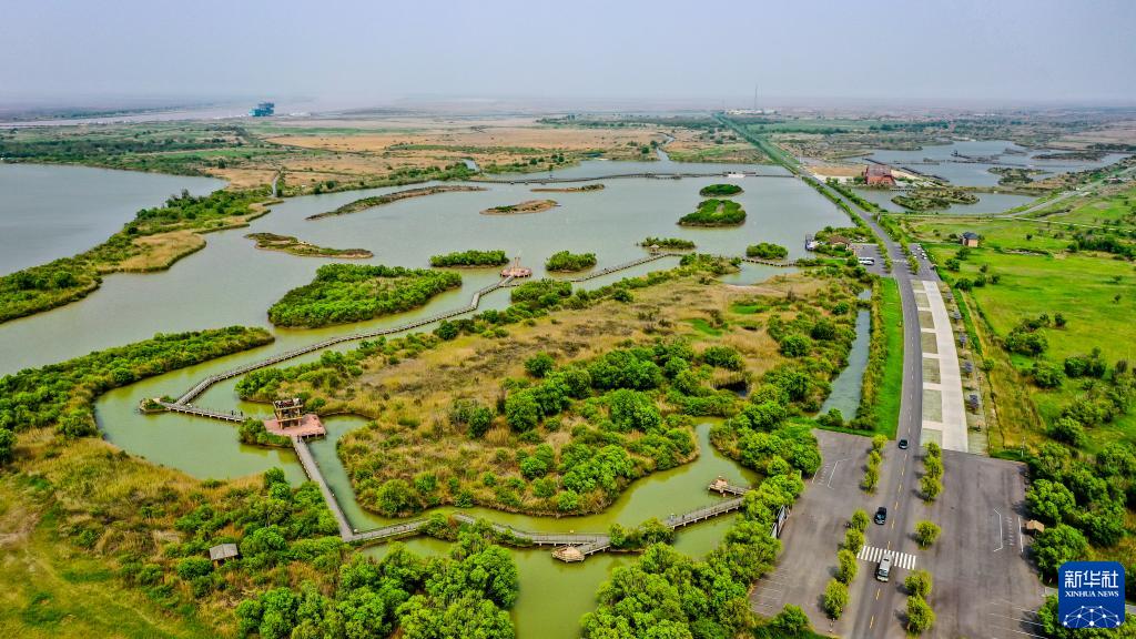 這是山東黃河三角洲國家級自然保護(hù)區(qū)景色(5月13日攝,無人機照片)。新華社記者 郭緒雷 攝