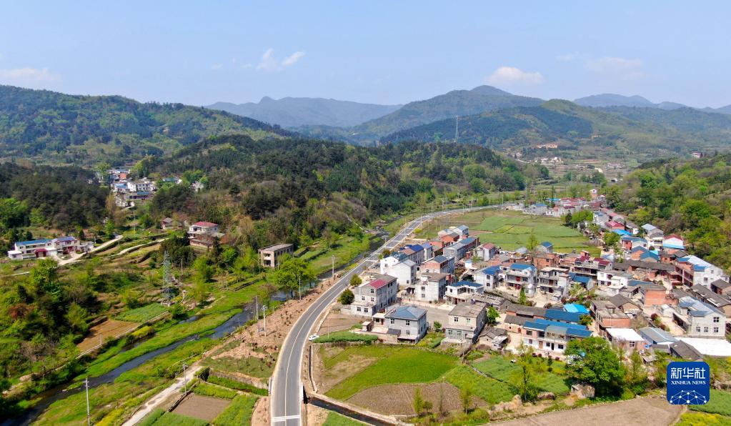這是4月9日在新縣郭家河鄉(xiāng)拍攝的鄉(xiāng)村景色(無人機照片)。新華社發(fā)