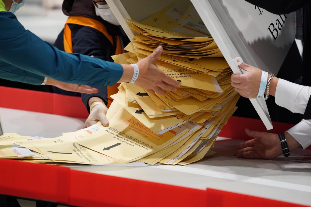 12月19日,香港順利舉行完善選舉制度后首次立法會選舉投票,工作人員點(diǎn)票現(xiàn)場。新華社記者 呂小煒 攝