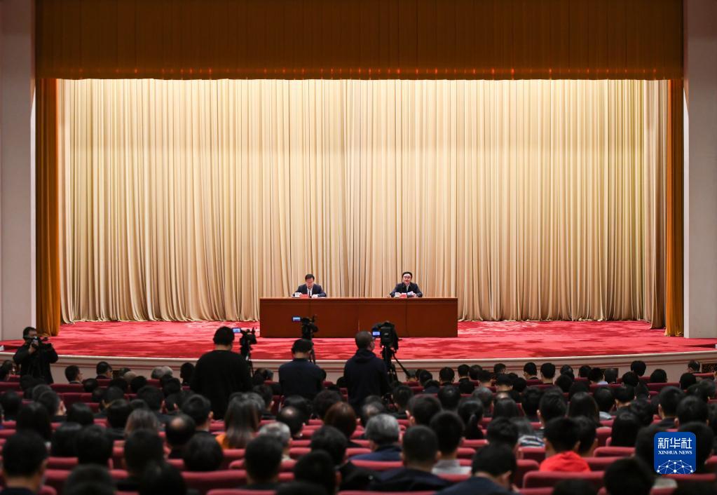 2021年3月16日,黨史學(xué)習教育中央宣講團首場報告會在北京舉行。這是中央宣講團成員、中央黨史和文獻研究院院長曲青山(右)在報告會上作宣講報告。新華社記者 陳曄華 攝