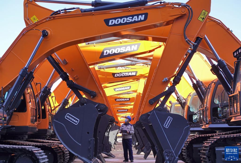 1月17日,在山東煙臺(tái)開(kāi)發(fā)區(qū)一家工程機(jī)械有限公司,工作人員對(duì)出廠車(chē)輛進(jìn)行檢查。新華社發(fā)(唐克 攝)