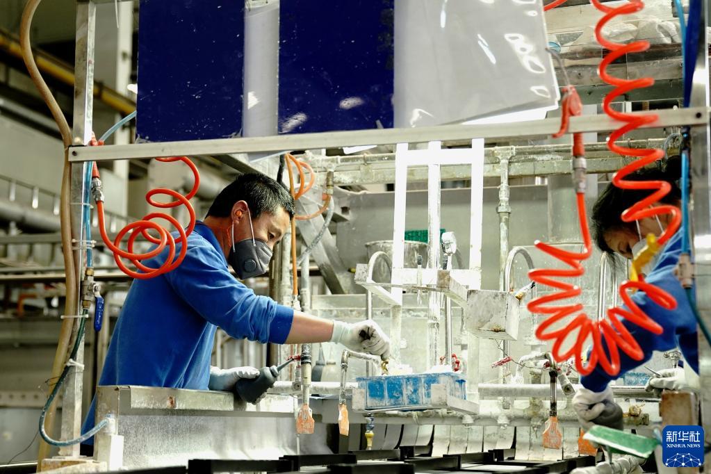 4月29日,上海加冷松芝汽車(chē)空調(diào)股份有限公司工人在生產(chǎn)車(chē)間忙碌。新華社記者 張建松 攝