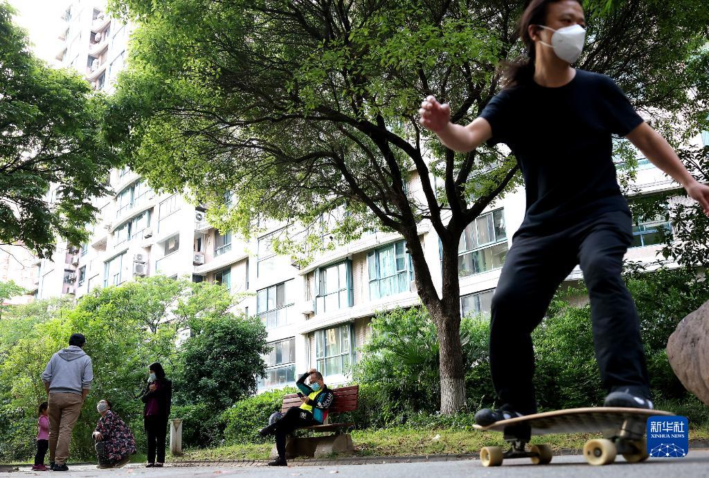 5月17日,市民在上海市普陀區(qū)的一個居民小區(qū)內(nèi)享受休閑一刻。新華社記者 陳飛 攝