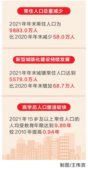 對此,省統(tǒng)計局方面分析,主要有兩個原因:一是自增人口減少,2021年全省自增人口6.3萬人,比2020年的20.8萬人減少了14.5萬人;二是流出人口增加,2021年隨著全國疫情好轉(zhuǎn),出省人口大量增加,全年新增出省人口64.3萬人。