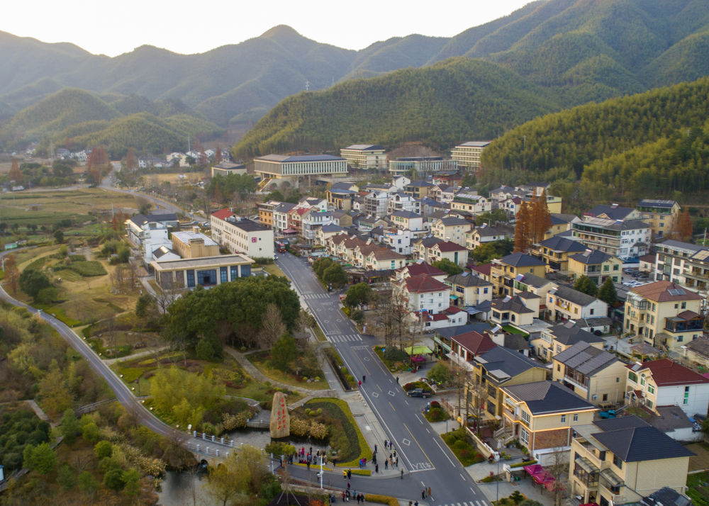 ↑2021年12月3日拍攝的浙江省安吉縣余村(無人機(jī)照片)。
