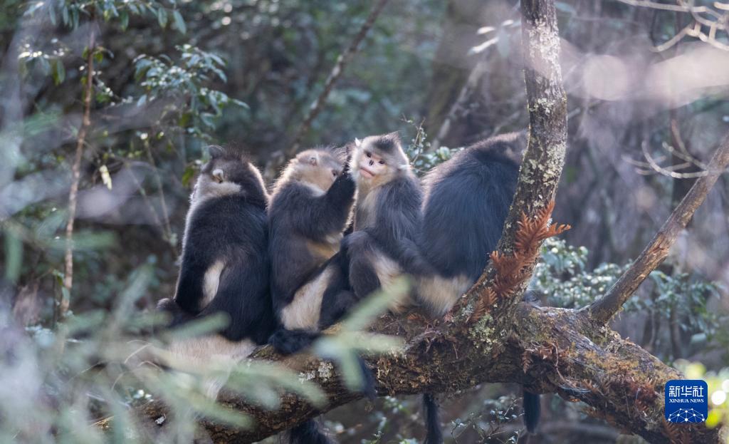 這是在云南白馬雪山國家級自然保護(hù)區(qū)內(nèi)拍攝的滇金絲猴(3月13日攝)。新華社記者 王冠森 攝