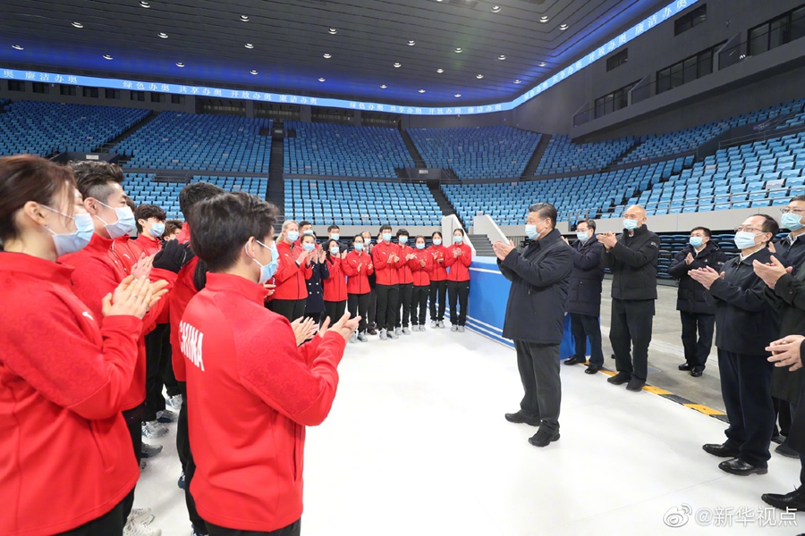 18日下午,習(xí)近平總書記來到位于北京市延慶區(qū)的國家高山滑雪中心考察調(diào)研。在競(jìng)技結(jié)束區(qū),習(xí)近平觀看了高山滑雪賽場(chǎng)保障運(yùn)行和競(jìng)技比賽訓(xùn)練情況。習(xí)近平指出,體育強(qiáng)國的基礎(chǔ)在群眾體育。要通過舉辦北京冬奧會(huì)、冬殘奧會(huì),把我國冰雪運(yùn)動(dòng)特別是雪上運(yùn)動(dòng)搞上去,在3億人中更好推廣冰雪運(yùn)動(dòng),推動(dòng)建設(shè)體育強(qiáng)國。臨別時(shí),大家齊聲高呼:“中國冰雪,加油!”習(xí)近平也鼓勵(lì)大家說:“加油!”(文字記者:張曉松、朱基釵 攝影記者:鞠鵬、王曄、燕雁、岳月偉)