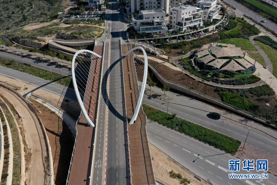 這是2021年1月8日在以色列莫迪因拍攝的全面“封城”期間空蕩的道路(無人機(jī)照片)。新華社發(fā)(吉爾·科恩·馬根攝)