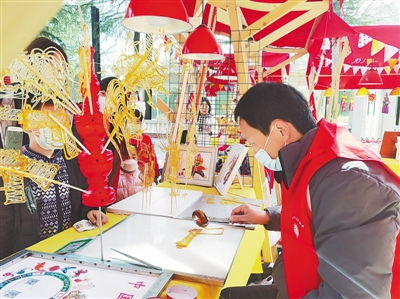 今年是牛年,我專門創(chuàng)作多個(gè)牛元素糖畫藝術(shù)品。雖然這個(gè)春節(jié)長(zhǎng)假一天也沒休息,天天都在非遺集市上忙碌,但是看著越來越多市民這么喜歡我們的非遺作品,心里特別高興。真心祝愿咱鄭州的非遺作品越來越牛!劉勝利一邊把剛做好的牛糖畫交到小朋友手中,一邊興奮地對(duì)記者說。