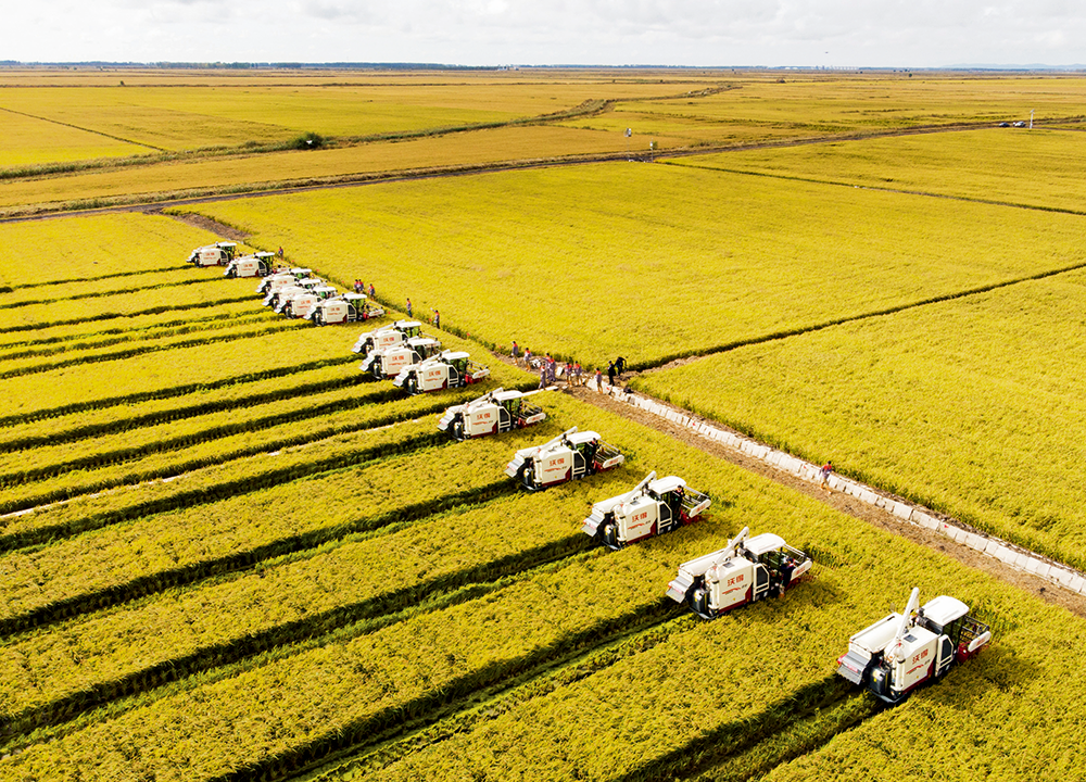 ▲ 2020年9月22日,中國(guó)農(nóng)民豐收節(jié),黑龍江省富錦市萬(wàn)畝水稻公園開鐮儀式現(xiàn)場(chǎng) 張濤攝
