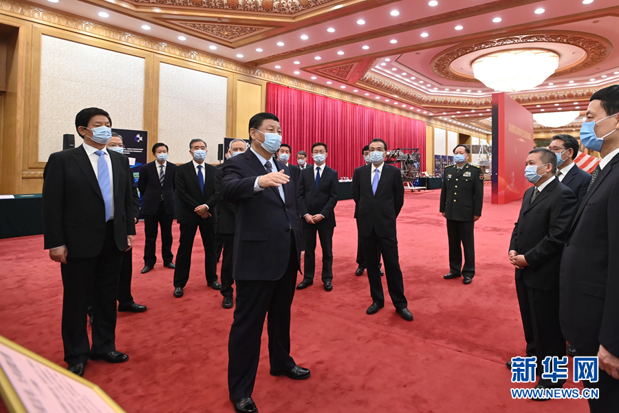 習近平在會見探月工程嫦娥五號任務參研參試人員代表并參觀月球樣品和探月工程成果展覽時強調(diào)