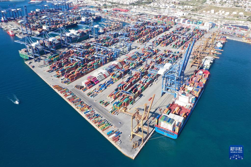 這是希臘比雷埃夫斯港(2019年1月16日攝,無(wú)人機(jī)照片)。新華社記者 吳魯 攝