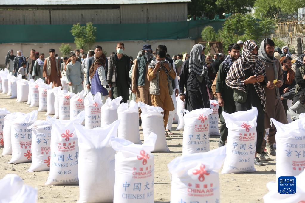 阿富汗民眾在首都喀布爾領(lǐng)取中國(guó)援助的糧食(2022年4月23日攝)。新華社發(fā)(塞夫拉赫曼·薩菲攝)