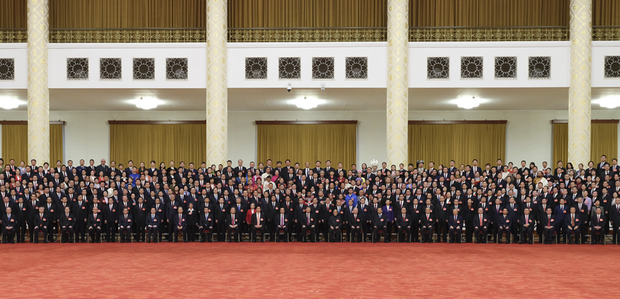?? 新華社北京10月23日電 中共中央總書記、國家主席、中央軍委主席習(xí)近平23日下午在人民大會堂親切會見了出席黨的二十大代表、特邀代表和列席人員,并同大家合影留念。