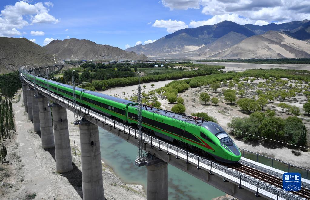 復(fù)興號(hào)列車行駛在西藏山南境內(nèi)(2022年6月22日攝)。新華社記者 覺(jué)果 攝