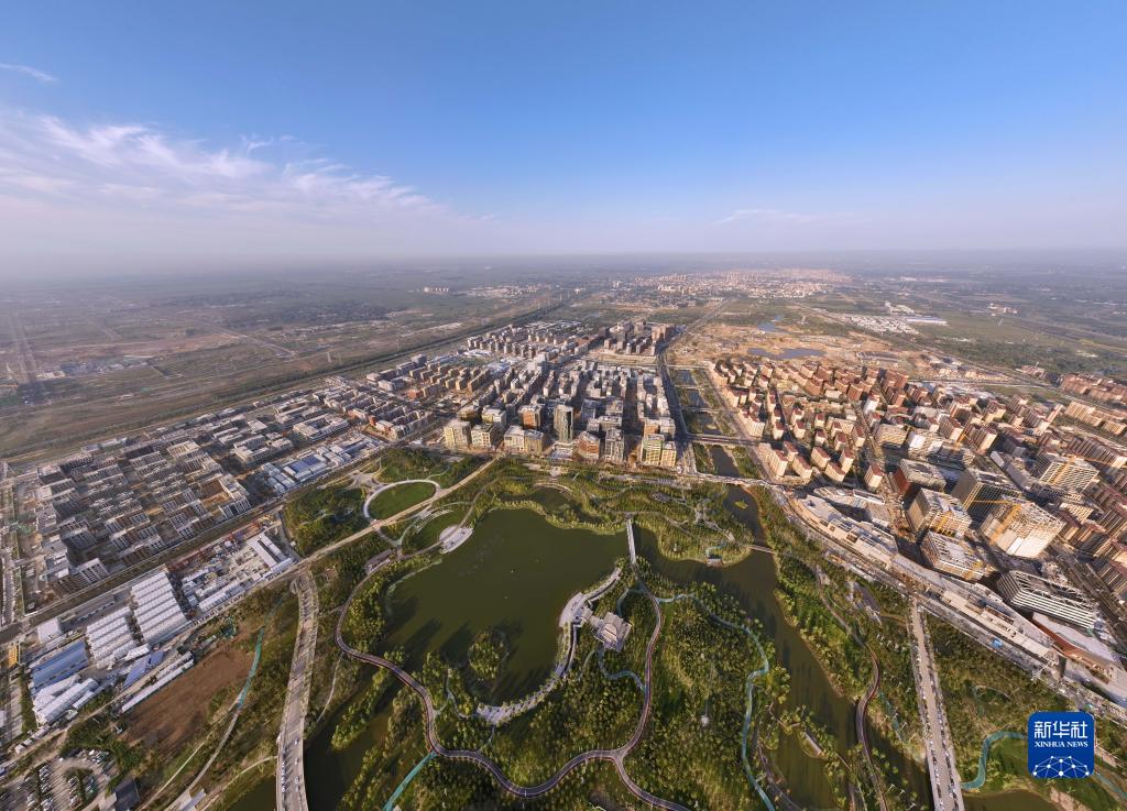 這是清晨時(shí)分的雄安新區(qū)容東片區(qū)(2022年9月8日攝,無(wú)人機(jī)照片)。新華社記者 邢廣利 攝