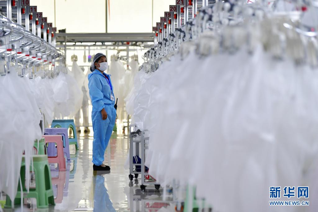 在甘肅臨夏回族自治州積石山縣,依托東西部扶貧協(xié)作平臺引進的服裝加工企業(yè)甘肅拓奇扶貧車間的員工在服裝加工生產(chǎn)線上作業(yè)(2020年8月9日攝)。新華社記者 陳斌 攝