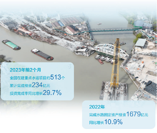 爭分奪秒,一張張“施工圖”正化作“實(shí)景圖”。據(jù)統(tǒng)計,今年前2個月,全國在建重點(diǎn)水運(yùn)項(xiàng)目約513個,累計完成投資234億元,與去年同期相比投資完成率增長29.7%。一系列水運(yùn)工程的順利推進(jìn),為推動擴(kuò)內(nèi)需、穩(wěn)增長提供了有力支撐。