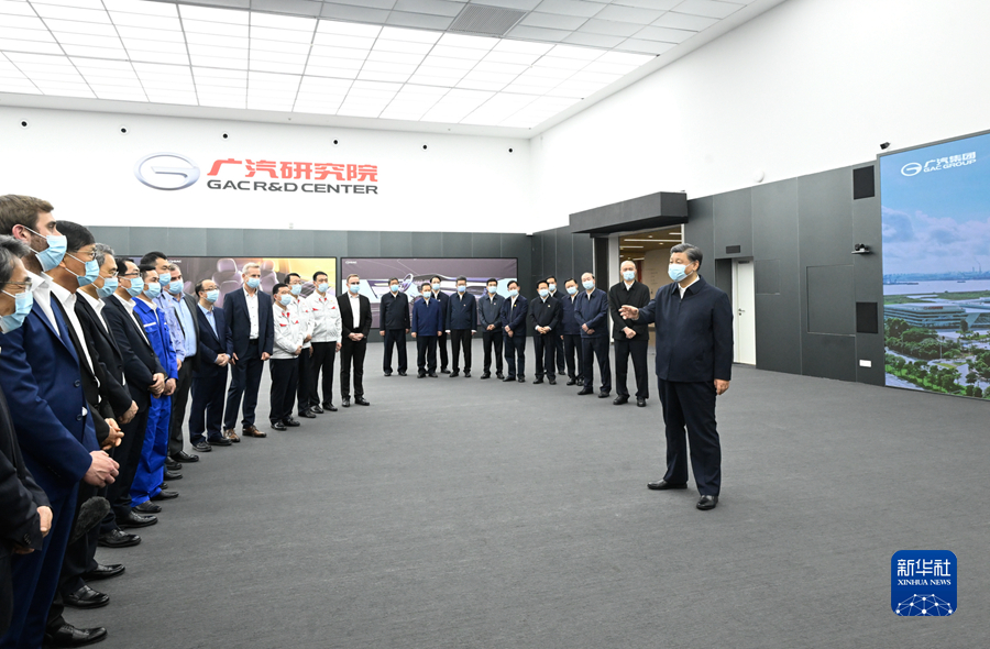 習(xí)近平隨后來到廣汽埃安新能源汽車股份有限公司考察。他走進(jìn)企業(yè)展廳、總裝車間、電池生產(chǎn)車間等,了解企業(yè)突破關(guān)鍵核心技術(shù)和推動(dòng)制造業(yè)高端化、智能化、綠色化等進(jìn)展情況。在廣汽研究院,習(xí)近平仔細(xì)察看智能網(wǎng)聯(lián)實(shí)驗(yàn)室、模型設(shè)計(jì)實(shí)驗(yàn)室等,并同科技人員、企業(yè)家、職工、外資企業(yè)代表等交流。習(xí)近平指出,中國(guó)改革開放政策將長(zhǎng)久不變,永遠(yuǎn)不會(huì)自己關(guān)上開放的大門。一切愿意與我們合作共贏的國(guó)家,我們都愿意與他們相向而行,推動(dòng)世界經(jīng)濟(jì)共同繁榮發(fā)展。習(xí)近平強(qiáng)調(diào),中國(guó)是個(gè)大國(guó),要重視實(shí)體經(jīng)濟(jì),走自力更生之路。關(guān)鍵核心技術(shù)要立足自主研發(fā),也歡迎國(guó)際合作。要加強(qiáng)教育和人才培養(yǎng),夯實(shí)科技自立自強(qiáng)根基。