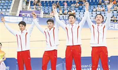 ??昨天,亞運會場地自行車比賽在淳安界首體育中心自行車館繼續(xù)進行,河南選手楊陽和隊友一起出戰(zhàn)男子自行車4公里團體追逐賽,以3分56秒277的成績獲得亞軍,金牌被日本選手奪得。