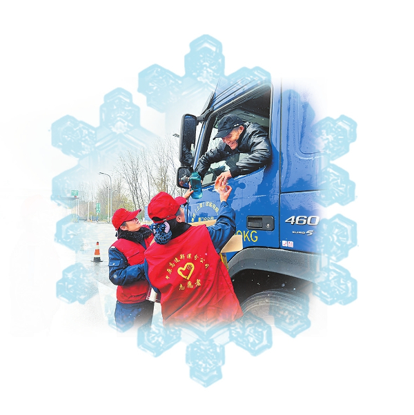 ??捧著“愛心簡(jiǎn)餐”,從江蘇來(lái)的貨車司機(jī)鄭師傅連連感謝:“大家除雪這么忙還在照顧我們,非常感動(dòng)。”