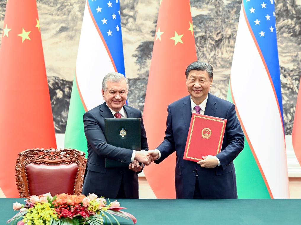 ??1月24日下午,國(guó)家主席習(xí)近平在北京人民大會(huì)堂同烏茲別克斯坦總統(tǒng)米爾濟(jì)約耶夫舉行會(huì)談。會(huì)談后,兩國(guó)元首簽署并發(fā)表了《中華人民共和國(guó)和烏茲別克斯坦共和國(guó)關(guān)于新時(shí)代全天候全面戰(zhàn)略伙伴關(guān)系的聯(lián)合聲明》。