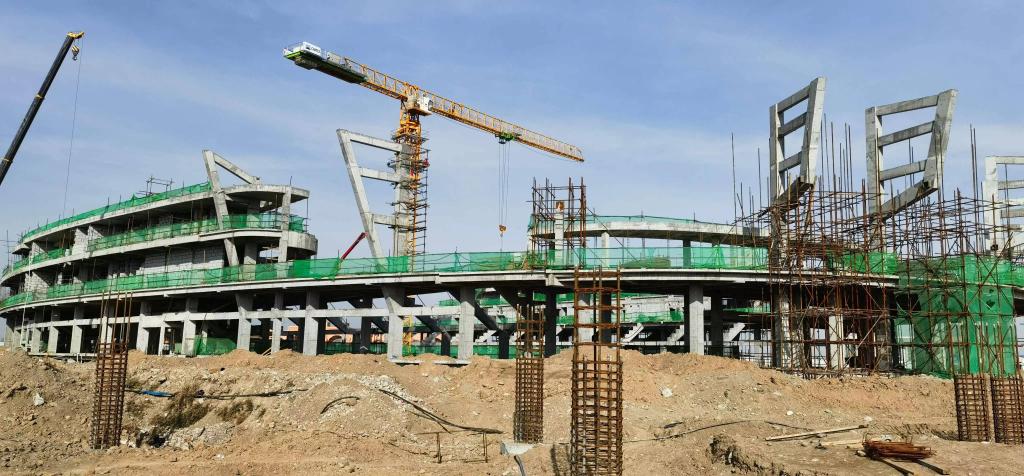 位于塔什干的奧林匹克城項(xiàng)目工地上,中烏施工團(tuán)隊(duì)正辛勤工作。