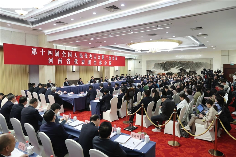 ?3月7日下午,十四屆全國(guó)人大二次會(huì)議河南代表團(tuán)舉行全體會(huì)議,并向境內(nèi)外媒體開(kāi)放。本報(bào)記者 董亮 杜小偉 攝