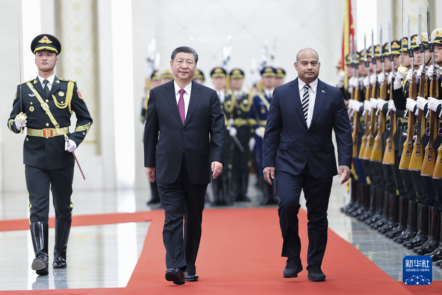 ??3月25日下午,國(guó)家主席習(xí)近平在北京人民大會(huì)堂同來(lái)華進(jìn)行國(guó)事訪(fǎng)問(wèn)的瑙魯總統(tǒng)阿迪昂舉行會(huì)談。這是會(huì)談前,習(xí)近平在人民大會(huì)堂北大廳為阿迪昂舉行歡迎儀式。新華社記者 翟健嵐 攝