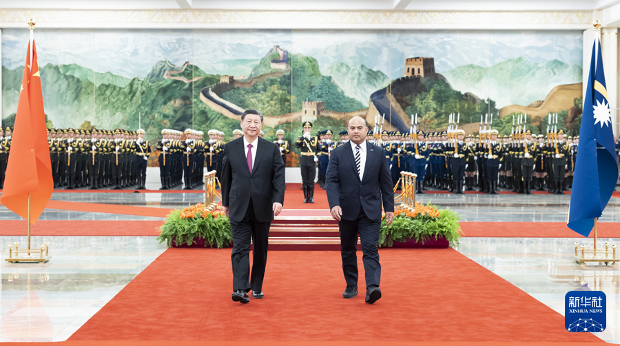 ??習(xí)近平指出,今年1月,瑙魯作出堅(jiān)持一個(gè)中國(guó)原則、同中國(guó)復(fù)交的政治決斷,這是符合歷史大勢(shì)、順應(yīng)時(shí)代潮流之舉。友好不分先后,只要開(kāi)啟,就會(huì)有光明前途。合作不論大小,只要真誠(chéng),就會(huì)有豐碩成果。中瑙關(guān)系已經(jīng)翻開(kāi)新的歷史篇章。中方愿同瑙方一道,開(kāi)創(chuàng)中瑙關(guān)系的美好未來(lái),更好造福兩國(guó)人民。