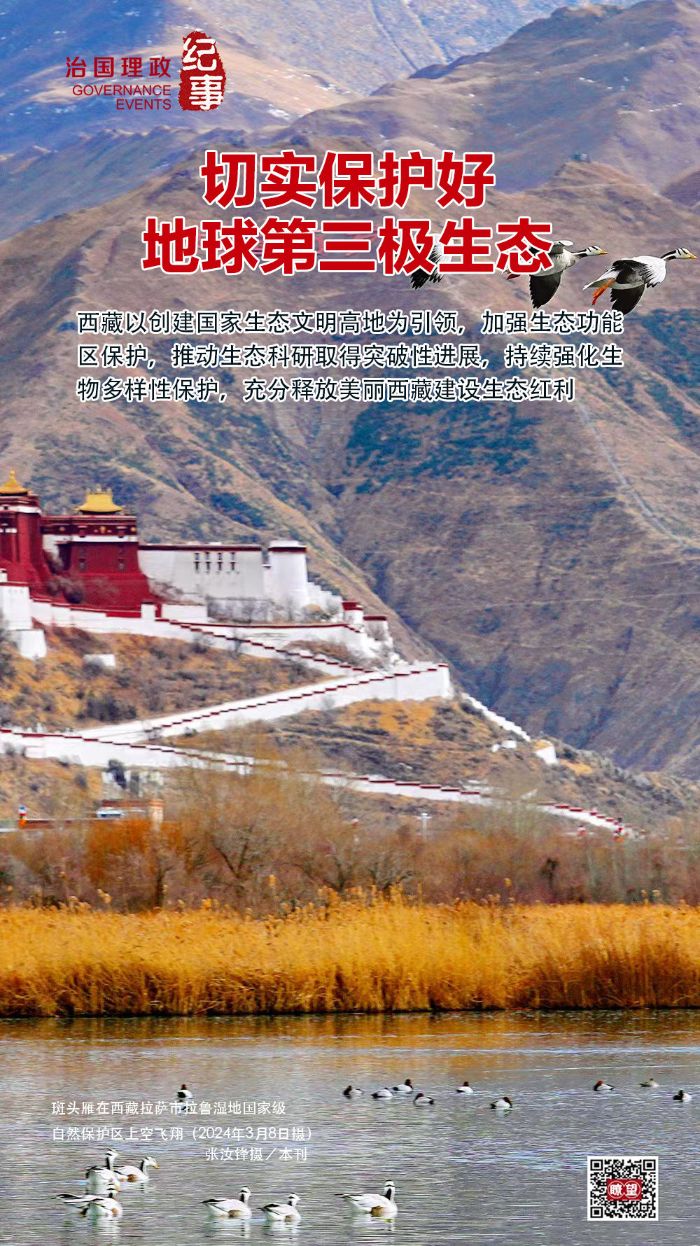 ??◇2021年7月,中共中央總書記、國(guó)家主席、中央軍委主席習(xí)近平在西藏考察時(shí)指出,保護(hù)好西藏生態(tài)環(huán)境,利在千秋、澤被天下。要牢固樹(shù)立綠水青山就是金山銀山、冰天雪地也是金山銀山的理念,保持戰(zhàn)略定力,提高生態(tài)環(huán)境治理水平,推動(dòng)青藏高原生物多樣性保護(hù),堅(jiān)定不移走生態(tài)優(yōu)先、綠色發(fā)展之路,努力建設(shè)人與自然和諧共生的現(xiàn)代化,切實(shí)保護(hù)好地球第三極生態(tài)。 ??◇西藏以創(chuàng)建國(guó)家生態(tài)文明高地為引領(lǐng),加強(qiáng)生態(tài)功能區(qū)保護(hù),推動(dòng)生態(tài)科研取得突破性進(jìn)展,持續(xù)強(qiáng)化生物多樣性保護(hù),充分釋放美麗西藏建設(shè)生態(tài)紅利。 ??◇2023年底,西藏全區(qū)7市(地)空氣環(huán)境質(zhì)量平均優(yōu)良天數(shù)比例達(dá)99%以上,沙塵天氣大幅減少;主要江河湖泊水質(zhì)達(dá)到或優(yōu)于III類標(biāo)準(zhǔn),城鎮(zhèn)集中式飲用水水源地水質(zhì)達(dá)標(biāo)率100%,土壤環(huán)境安全穩(wěn)定,西藏生態(tài)環(huán)境質(zhì)量保持全國(guó)領(lǐng)先水平。 ??◇西藏建立起以國(guó)家公園為主體的自然保護(hù)地體系,將超過(guò)60萬(wàn)平方公里的國(guó)土納入生態(tài)保護(hù)紅線,占全區(qū)國(guó)土面積的50%以上。 ??◇我國(guó)正在推進(jìn)“三極環(huán)境與氣候變化”國(guó)際大科學(xué)計(jì)劃,聚焦人類共同命運(yùn),構(gòu)建三極科學(xué)研究共同體,應(yīng)對(duì)全球氣候變化挑戰(zhàn)。 ??◇“國(guó)家公園的建設(shè),有效維護(hù)重點(diǎn)野生動(dòng)物核心分布區(qū)的原真性和完整性?!?/strong> ??◇“我們的工作,就是利用種子或植物活體開(kāi)展實(shí)驗(yàn),最終返回原生地栽培,保護(hù)好生物多樣性?!?/strong> ??◇“桃花節(jié)”自2002年起舉辦至今,名氣越來(lái)越大,吸引著來(lái)自五湖四海的游客。如今,嘎拉村村民年人均可支配收入達(dá)3.5萬(wàn)元。 ??◇目前,青藏高原生態(tài)系統(tǒng)碳匯總量為每年1.62億噸,占全國(guó)生態(tài)系統(tǒng)碳匯的8%至16%,今后這一比例還將增加。 這里是世界上生態(tài)環(huán)境質(zhì)量最好的地區(qū)之一,空氣質(zhì)量與北極地區(qū)相當(dāng),土壤環(huán)境總體處于自然本底狀態(tài)。 ??這里是世界上生物多樣性最豐富的地區(qū)之一,中國(guó)最高的樹(shù)在這里茁壯生長(zhǎng),藏羚羊、黑頸鶴、雪豹、孟加拉虎等野生動(dòng)物在這里繁衍生息。 ??這里也是生態(tài)脆弱區(qū)、全球氣候變化敏感區(qū),生態(tài)環(huán)境一旦破壞,修復(fù)難度非常大。 ??青藏高原,素有“世界屋脊”“地球第三極”“亞洲水塔”之稱,是重要的國(guó)家生態(tài)安全屏障。保護(hù)好青藏高原生態(tài)就是對(duì)中華民族生存和發(fā)展的最大貢獻(xiàn)。 ??2021年7月,中共中央總書記、國(guó)家主席、中央軍委主席習(xí)近平在西藏考察時(shí)指出,保護(hù)好西藏生態(tài)環(huán)境,利在千秋、澤被天下。要牢固樹(shù)立綠水青山就是金山銀山、冰天雪地也是金山銀山的理念,保持戰(zhàn)略定力,提高生態(tài)環(huán)境治理水平,推動(dòng)青藏高原生物多樣性保護(hù),堅(jiān)定不移走生態(tài)優(yōu)先、綠色發(fā)展之路,努力建設(shè)人與自然和諧共生的現(xiàn)代化,切實(shí)保護(hù)好地球第三極生態(tài)。 ??特殊的生態(tài),得到特殊的關(guān)注和保護(hù)。2021年7月,中央全面深化改革委員會(huì)第二十次會(huì)議審議通過(guò)《青藏高原生態(tài)環(huán)境保護(hù)和可持續(xù)發(fā)展方案》。2023年4月,習(xí)近平主席簽署中華人民共和國(guó)主席令,公布《中華人民共和國(guó)青藏高原生態(tài)保護(hù)法》。 ??“我們牢牢把握習(xí)近平總書記重要指示精神,站在對(duì)歷史負(fù)責(zé)、對(duì)人民負(fù)責(zé)、對(duì)世界負(fù)責(zé)的高度,創(chuàng)建國(guó)家生態(tài)文明高地,堅(jiān)決扛起生態(tài)文明建設(shè)政治責(zé)任,努力做到在保護(hù)中發(fā)展、在發(fā)展中實(shí)現(xiàn)更高水平的保護(hù),努力做到生態(tài)文明建設(shè)走在全國(guó)前列?!蔽鞑刈灾螀^(qū)黨委書記王君正說(shuō)。 ??從頒布實(shí)施《西藏自治區(qū)國(guó)家生態(tài)文明高地建設(shè)條例》《西藏自治區(qū)環(huán)境保護(hù)條例》等地方性法規(guī)和政府規(guī)章,到成立西藏自治區(qū)黨委生態(tài)文明建設(shè)領(lǐng)導(dǎo)小組,再到完善執(zhí)法流程等一系列機(jī)制,西藏以創(chuàng)建國(guó)家生態(tài)文明高地為引領(lǐng),加強(qiáng)生態(tài)功能區(qū)保護(hù),推動(dòng)生態(tài)科研取得突破性進(jìn)展,持續(xù)強(qiáng)化生物多樣性保護(hù),充分釋放美麗西藏建設(shè)生態(tài)紅利。 ??生態(tài)優(yōu)先,綠色發(fā)展。在“地球第三極”的山水間,各族干部群眾綿綿用力、久久為功,扎實(shí)推進(jìn)生態(tài)文明建設(shè)。 ??不斷筑牢國(guó)家生態(tài)安全屏障 ??西藏是國(guó)家生態(tài)安全屏障,具有特殊的生態(tài)地位和價(jià)值,在我國(guó)以至全球生態(tài)安全中發(fā)揮著極其重要的作用。從自然環(huán)境看,西藏自然生態(tài)先天敏感而脆弱,隨著全球氣候變暖,青藏