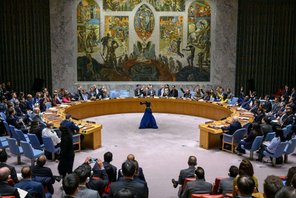 2023年11月15日,在位于紐約的聯(lián)合國總部,安理會就涉巴以局勢的決議草案進(jìn)行表決。新華社發(fā)(聯(lián)合國供圖/洛伊·費(fèi)利佩攝)