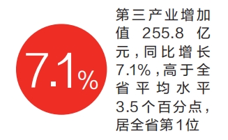 ??分產業(yè)看,三次產業(yè)增加值增速全面領先。第一產業(yè)增加值18.4億元,同比增長2.9%,高于全省平均水平0.3個百分點,居全省第4位;第二產業(yè)增加值189.2億元,同比增長11.7%,高于全省平均水平5個百分點,居全省第2位;第三產業(yè)增加值255.8億元,同比增長7.1%,高于全省平均水平3.5個百分點,居全省第1位。(記者 李宗寬)