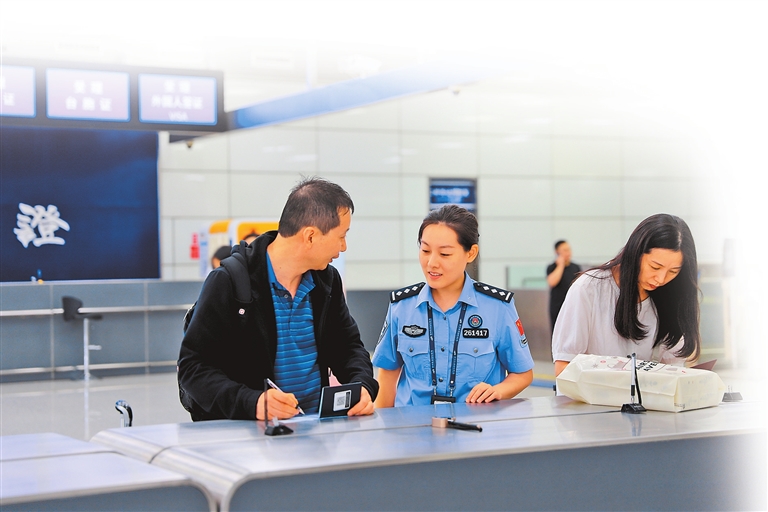 鄭州出入境邊防檢查站民警在引導(dǎo)旅客填寫外國人入境卡。 謝文長(zhǎng) 攝