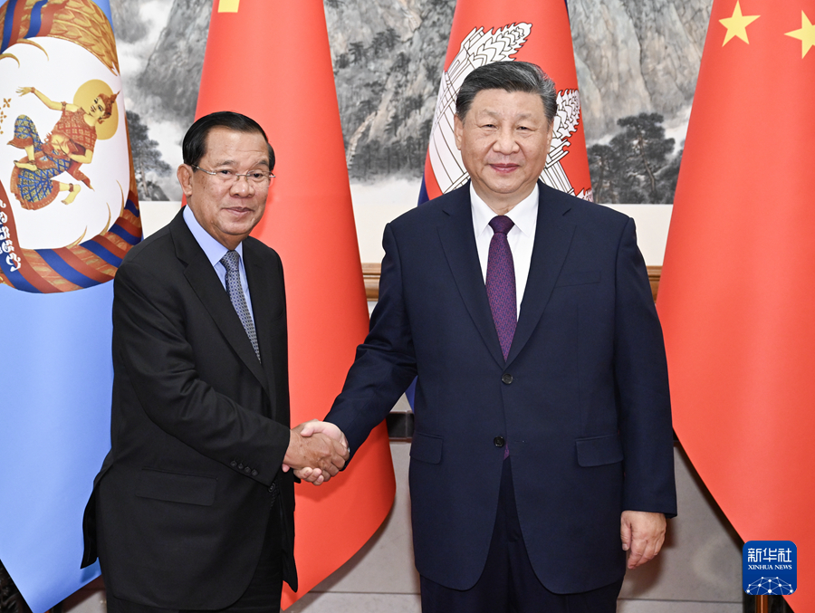 ??習近平指出,當前,國際形勢變亂交織,全球性挑戰(zhàn)層出不窮,考驗著各國的應對和選擇。中柬兩國都致力于做世界的和平力量、發(fā)展力量、進步力量。中方將繼續(xù)支持柬埔寨在國際和地區(qū)事務中發(fā)揮更大作用,壯大“全球南方”力量,支持東盟堅持戰(zhàn)略自主,維護中心地位,堅決反對外部勢力將冷戰(zhàn)思維引入本地區(qū),堅定不移推動東盟一體化和共同體建設。中方愿同柬方堅定道不改、志不變的決心,增強底線思維,加強協(xié)作和配合,共同應對各種風險。