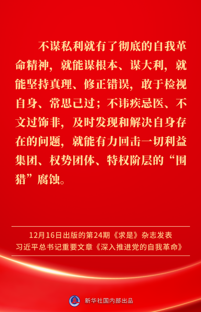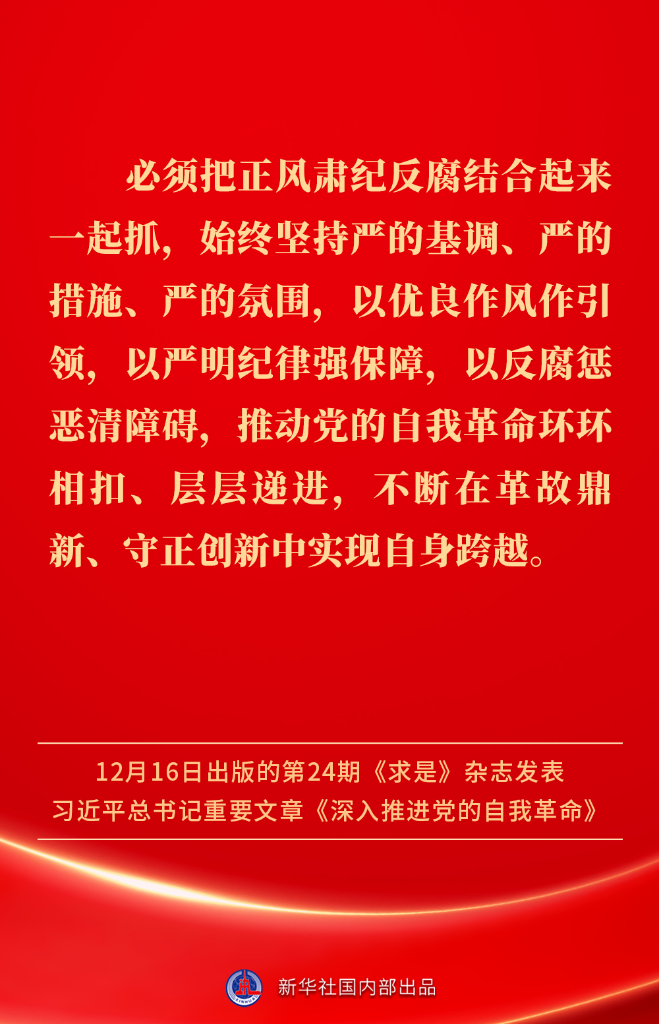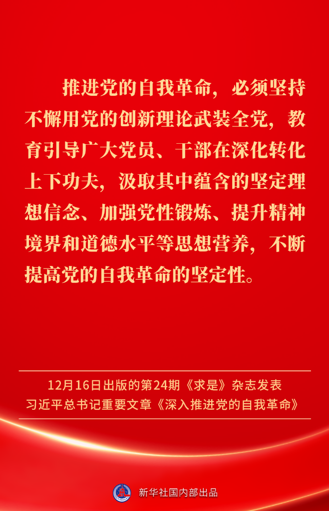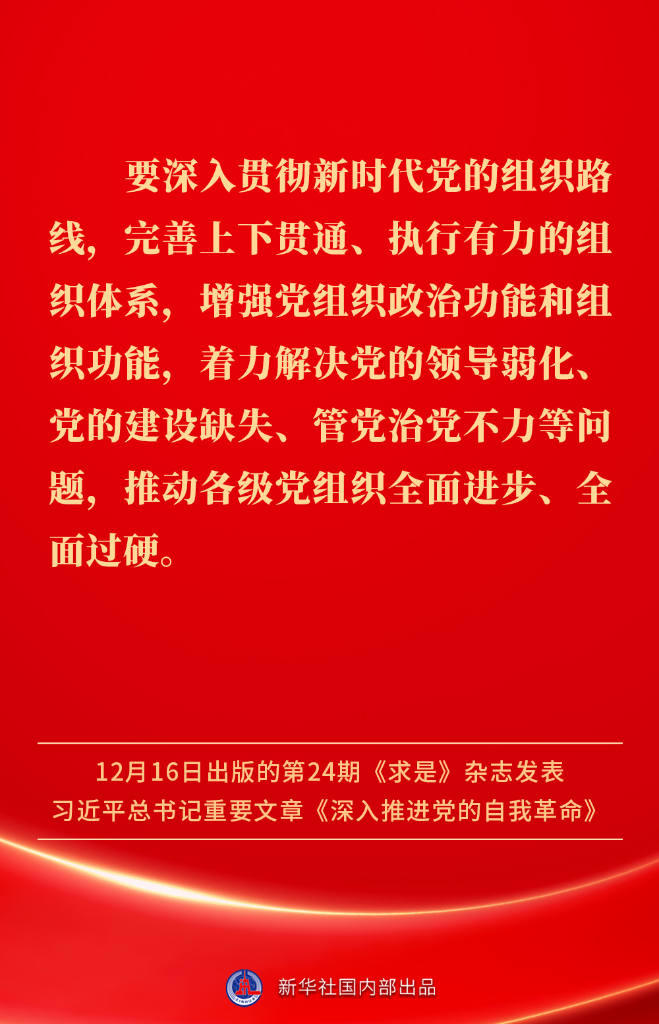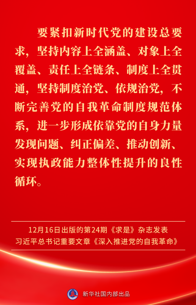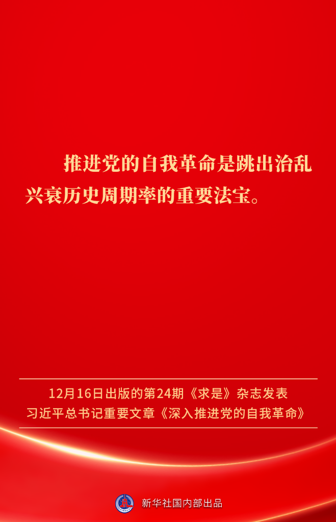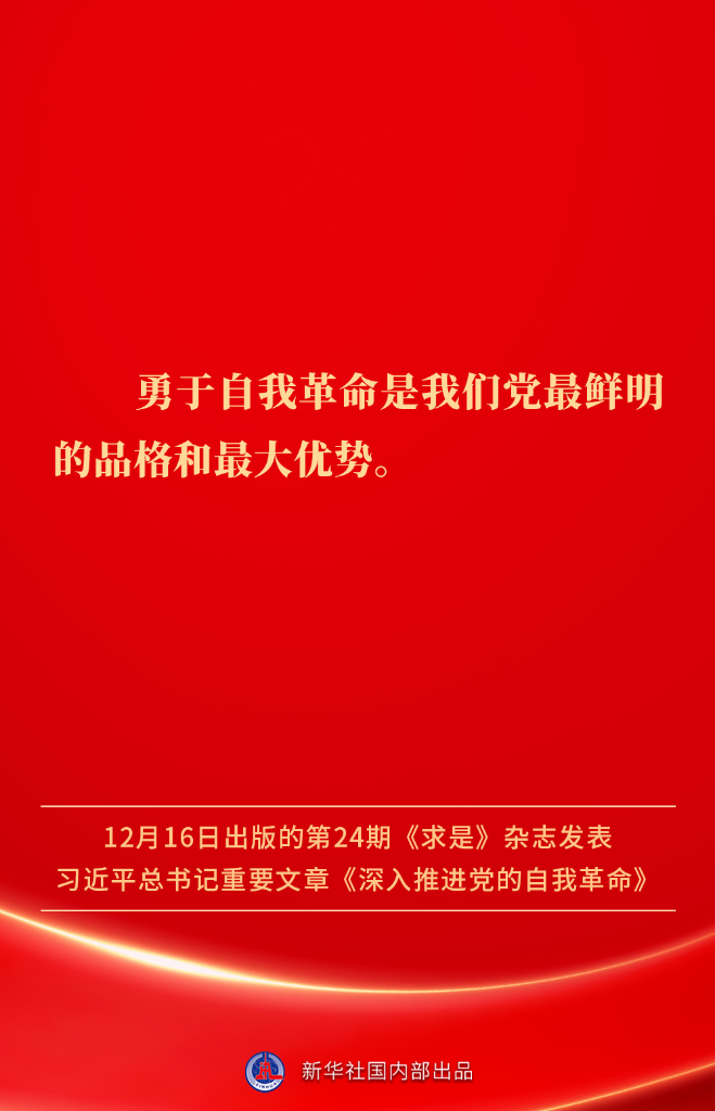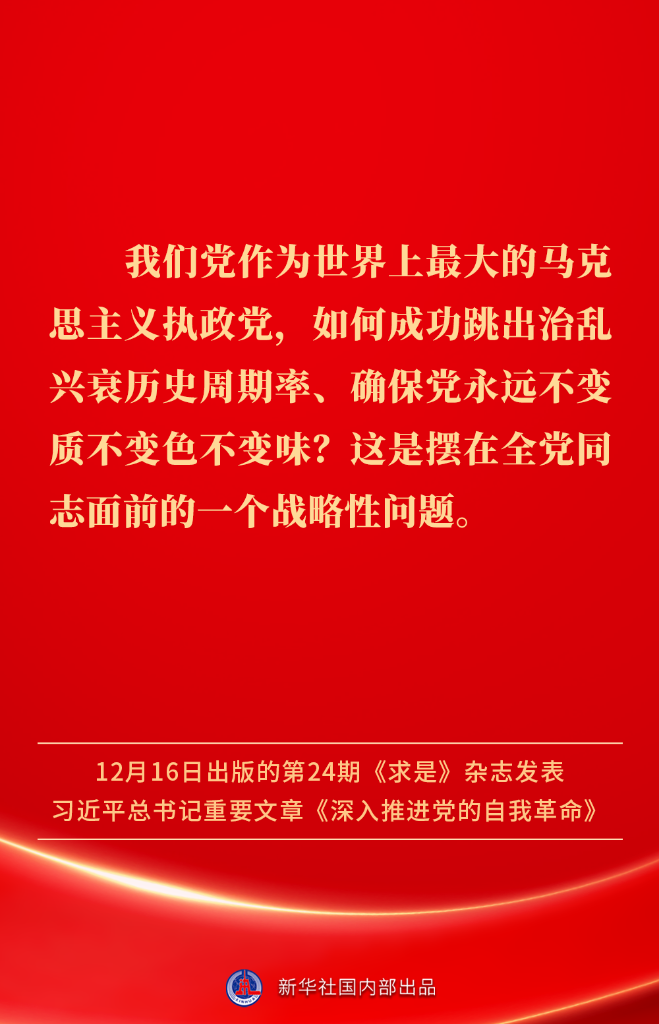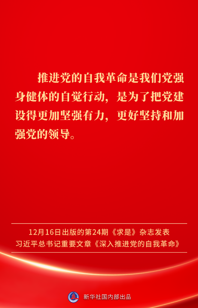 ?   ?12月16日出版的第24期《求是》雜志發(fā)表習(xí)近平總書記重要文章《深入推進(jìn)黨的自我革命》。我們黨為什么要自我革命、為什么能自我革命、怎樣推進(jìn)自我革命?習(xí)近平總書記這樣闡述——