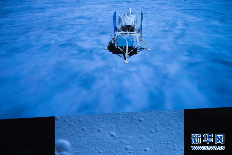 2020年12月1日23時(shí)11分,嫦娥五號(hào)探測器成功著陸在月球正面西經(jīng)51.8度、北緯43.1度附近的預(yù)選著陸區(qū),并傳回著陸影像圖。這是在北京航天飛行控制中心拍攝的嫦娥五號(hào)探測器落月瞬間。新華社記者 金立旺 攝
